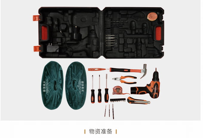 物資準備:上門前必須著我們統一工作服,佩戴工作證,準備好安裝工具、搬抬工具(搬運背帶等)、備件、筆記本、手套、鞋套、地墊、衛生清掃工具(清潔劑、抹布、掃把簸箕、拖把、吸塵器等)、瓶裝水、《我們安裝施工指示牌》、收據和我們產品說明書、《產品配送單》和《配送滿意度調查表》等物品。再帶上小禮品,例:鮮花或碳包去味禮包等。
